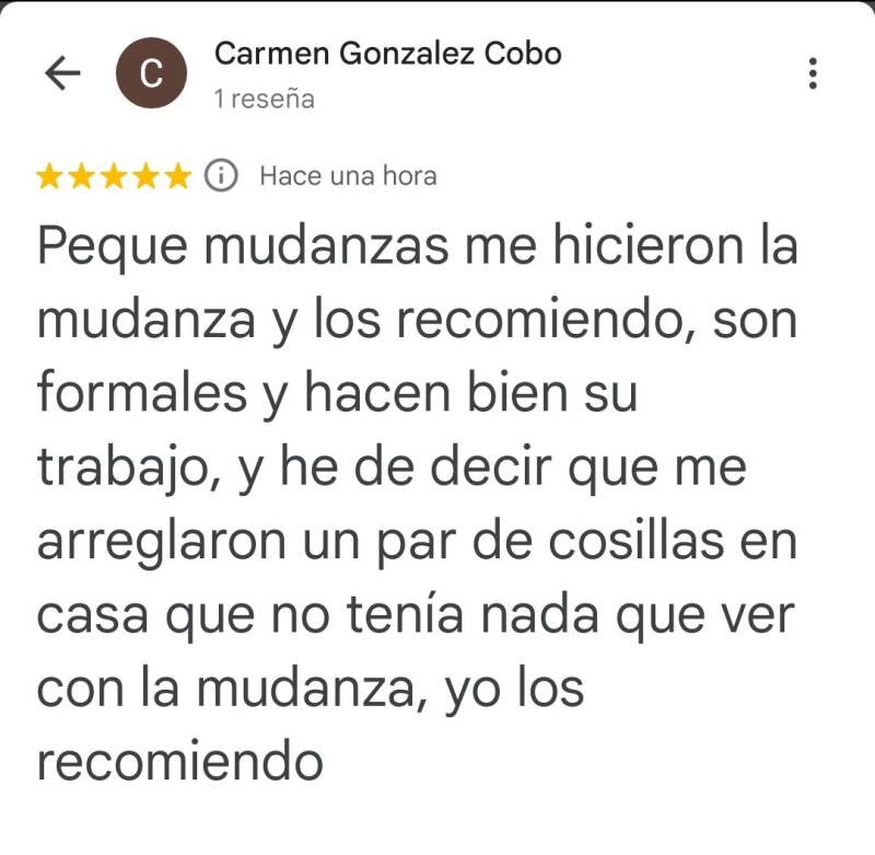 “Contraté a Peque Mudanzas Córdoba para mi traslado y quedé muy satisfecho con el servicio. El equipo fue puntual, cuidadoso con mis pertenencias y muy profesionales en todo momento. Definitivamente los recomendaría a cualquiera que necesite una mudanza confiable en Córdoba.”